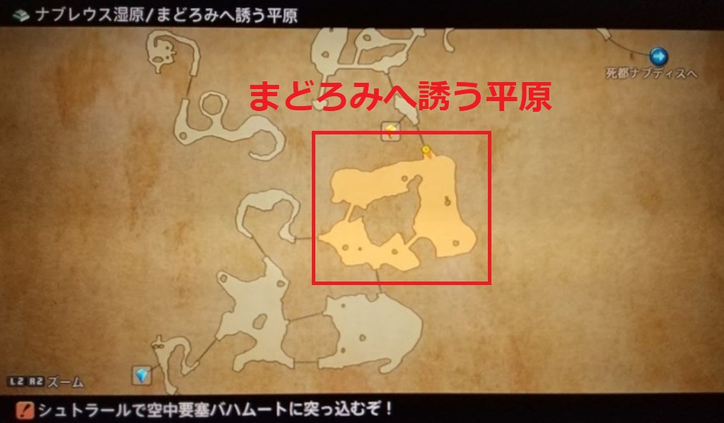 フォーバーはガラムサイズ水路やナブレウス湿原の数ヵ所で出現しますが、おススメは一番手っ取り早く出会えるナブレウス湿原のマップ/まどろみへ誘う平原です。