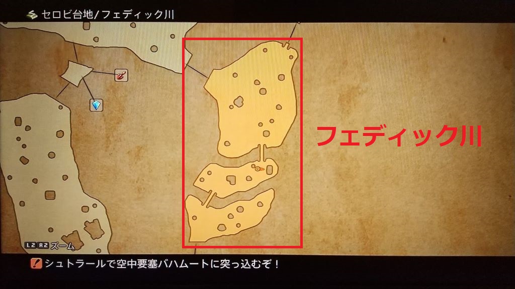 おススメの狩場はセロビ台地のマップ/フェディック川です。